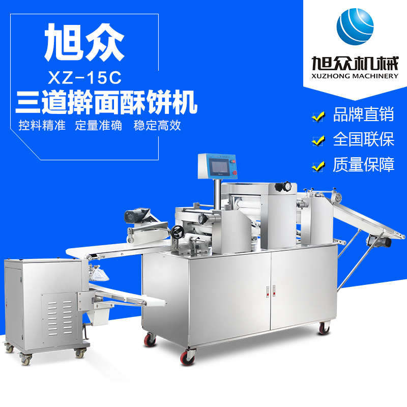 xz-15c三道搟面酥餅機(jī),仿手工制作面食產(chǎn)品的機(jī)型,占地面積小,重量輕,運(yùn)用搟面杖壓面和打擊面團(tuán),以保證高面筋性和面帶的密度,并綜合考慮面食的口感而研發(fā)??缮a(chǎn)東北糖酥餅,東北大香酥餅,蘇式月餅,芝麻餅,鮮花餅,老婆餅。購機(jī)免費(fèi)提供工藝技術(shù)